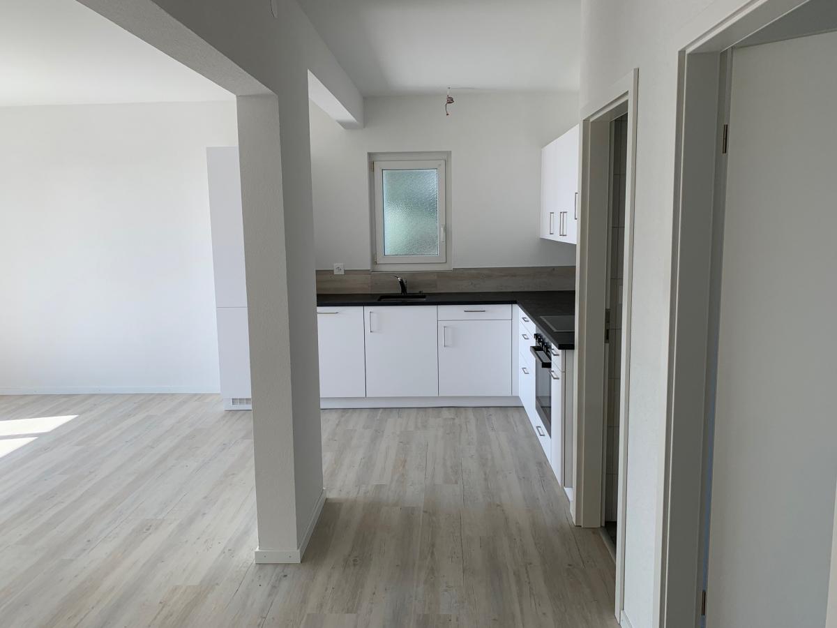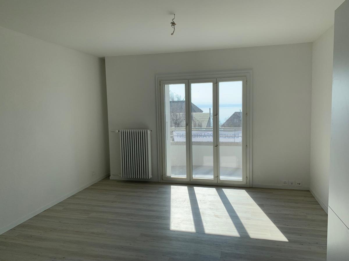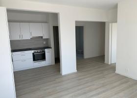 Appartement entièrement rénové comprenant : Hall, cuisine agencée, séjour avec balcon, 2 chambres, salle-de-bains/WC, cave.