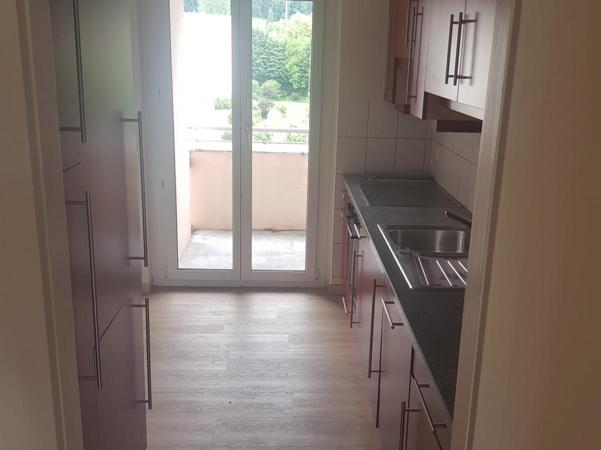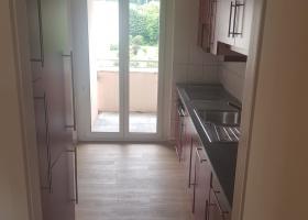 Cuisine agencée, séjour, 2 chambres, balcon, salle-de-bains, WC séparé et balcon.
