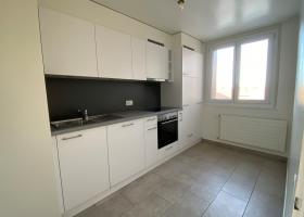 Hall, séjour, cuisine agencée, 2 chambres, salle de bains/wc. Réfection peintures et sols.
