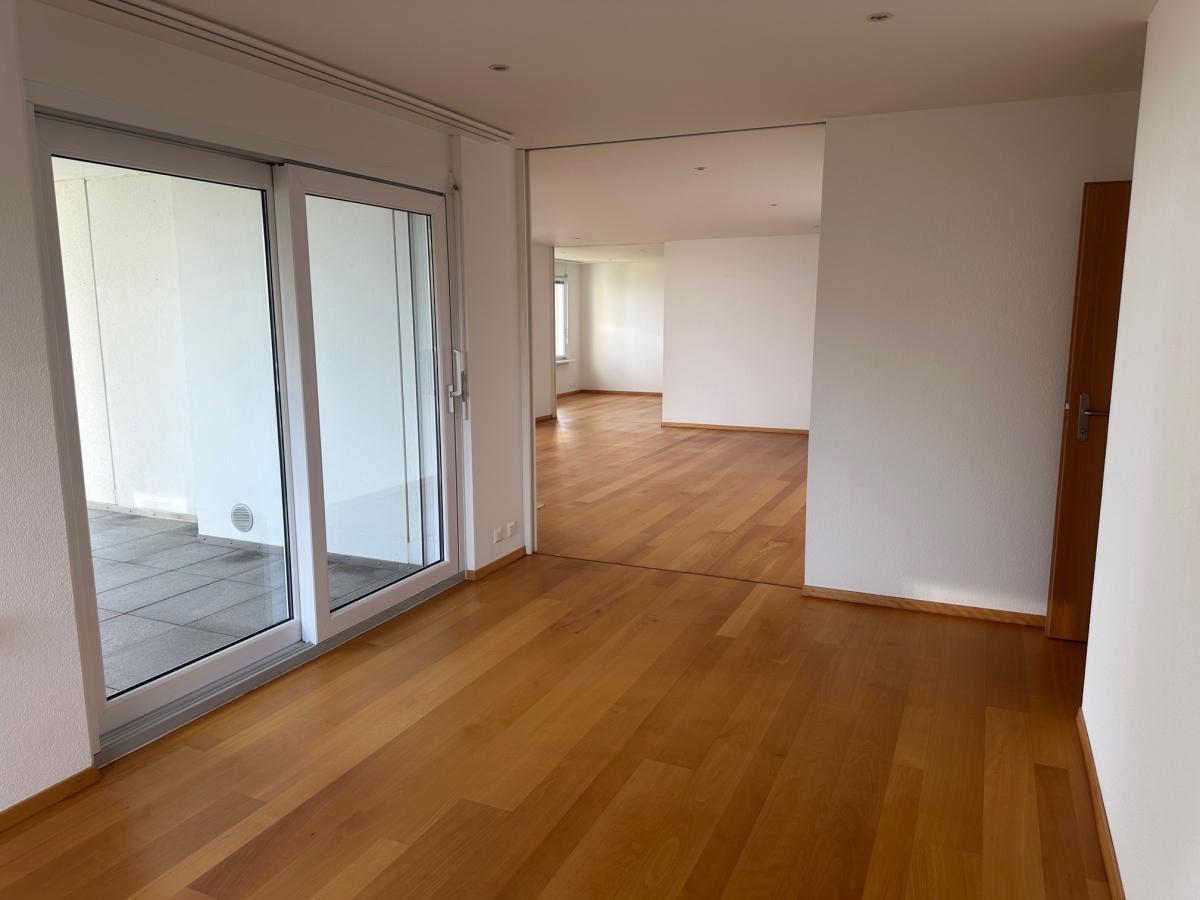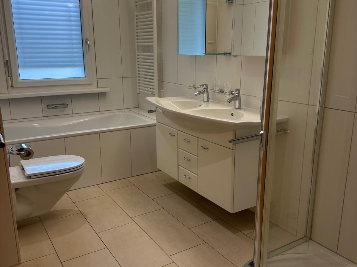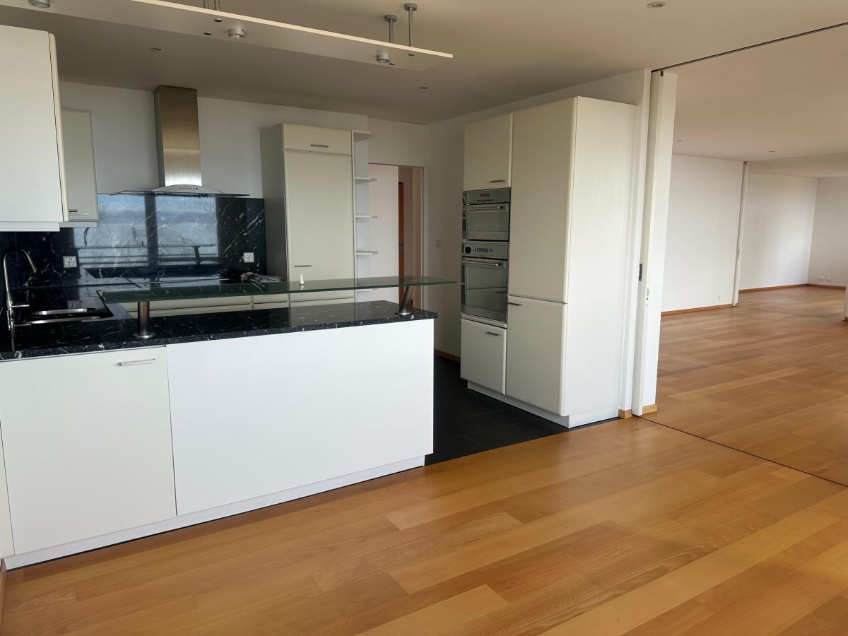 Séjour a/cheminée, 4 chambres, cuisine agencée, 2 salles d'eau/wc, wc séparé, cave à titre gratuit et à bien plaire. Terrasse de 36m2. Garage double 20 & 21 à CHF 250.00 par mois. (art. PPE 15393 & 15394)