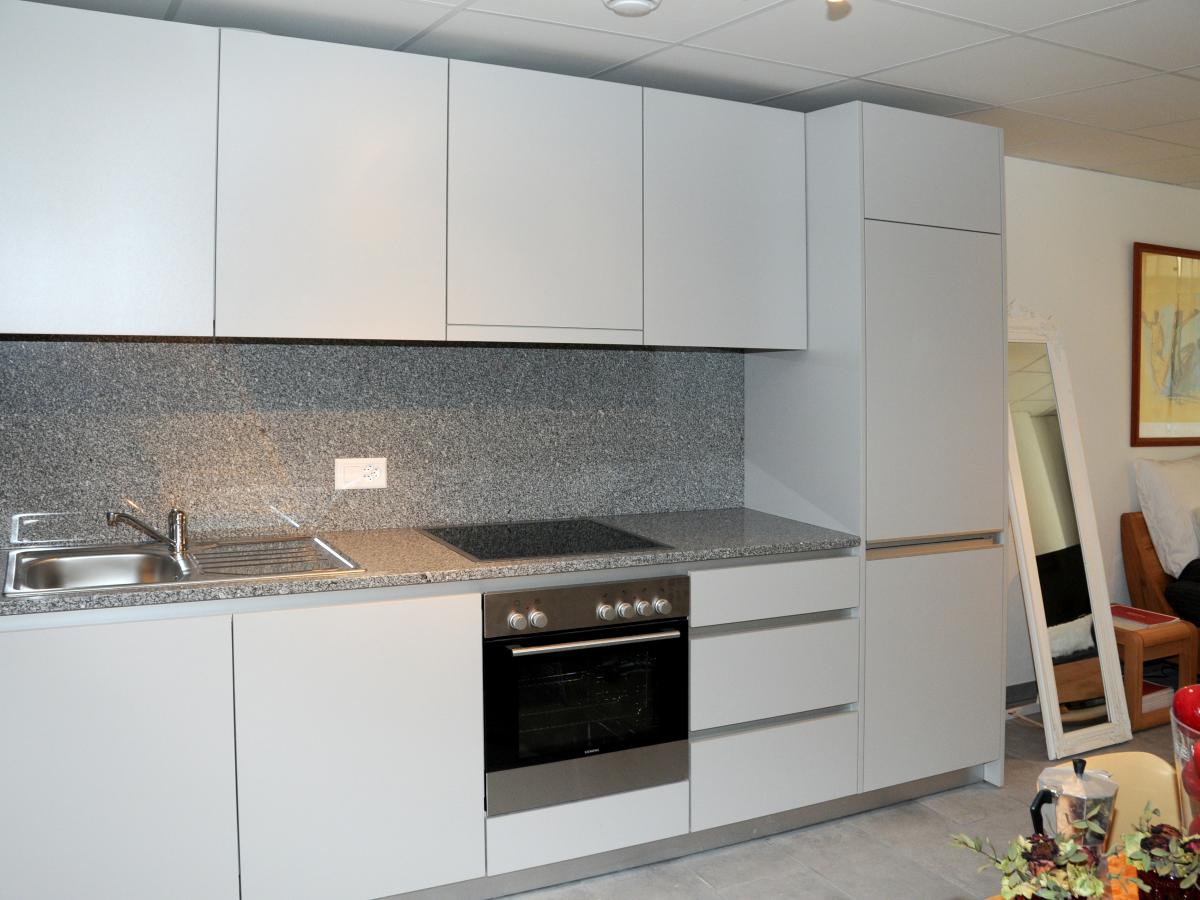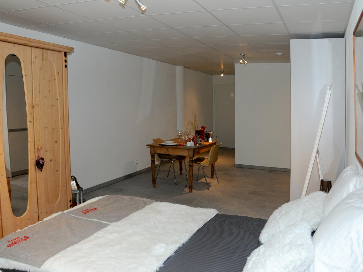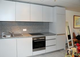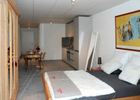 Cuisine parfaitement agencée, une pièce, salle-de-douche/WC.