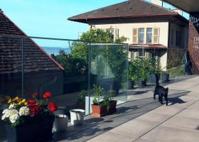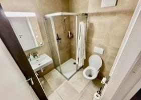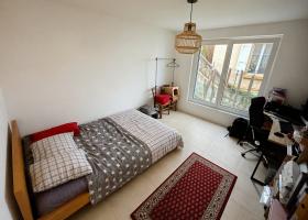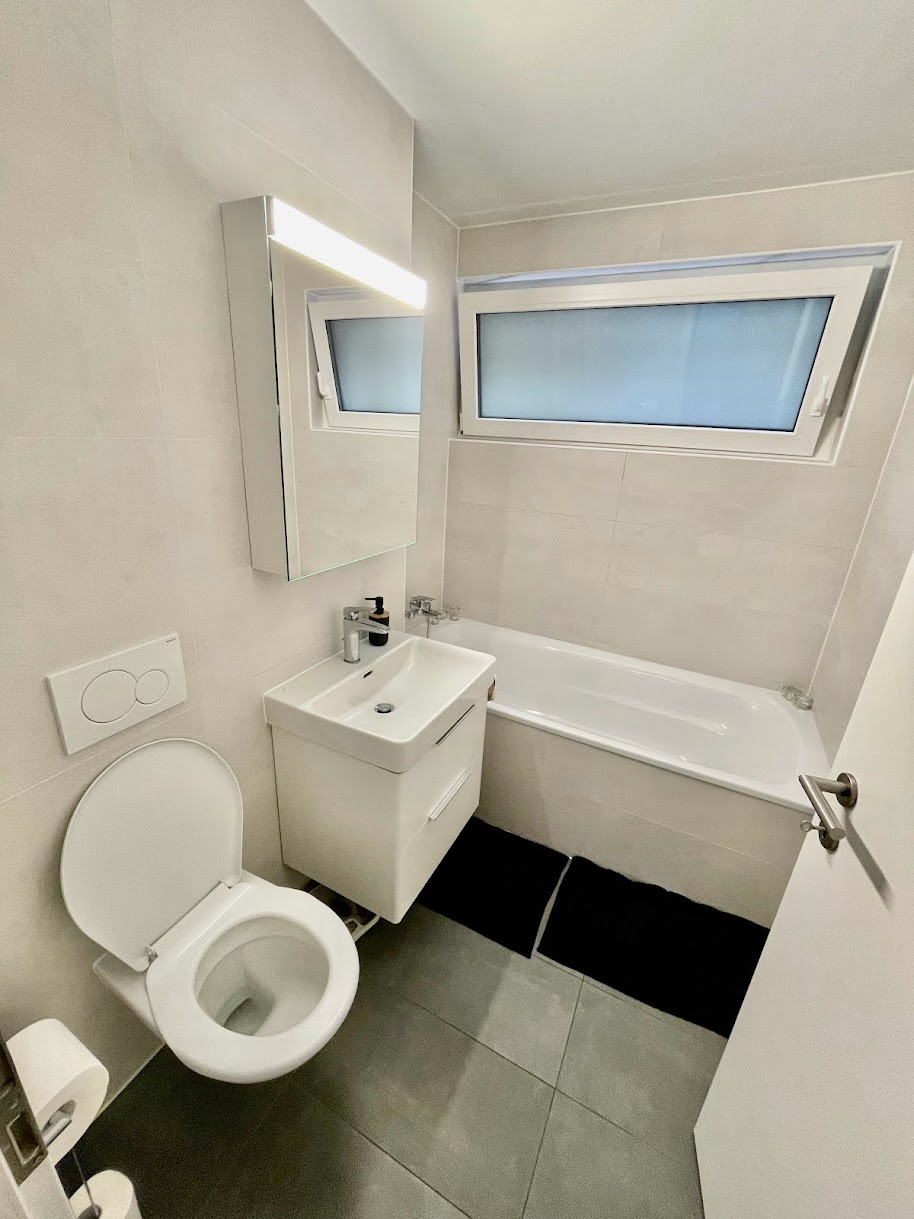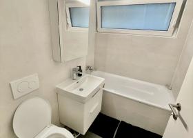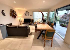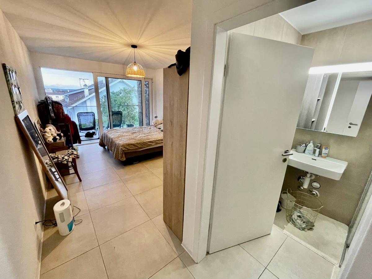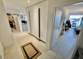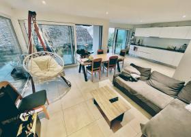 Hall, cuisine agencée, séjour avec balcon, deux chambres, salle-de-douches/WC, salle-de-bains/WC, cave.