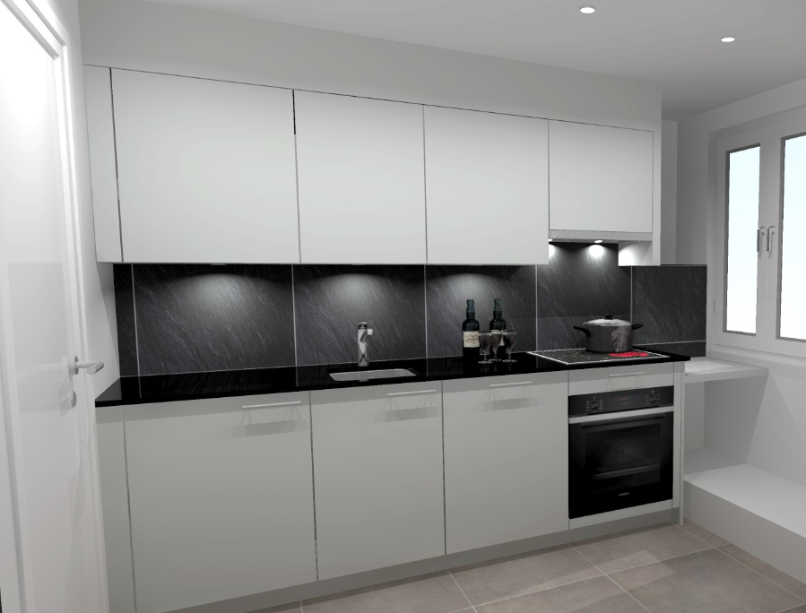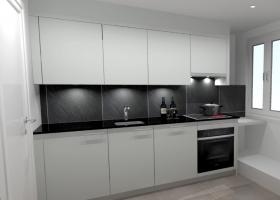 Appartement entièrement rénové comprenant : Hall, cuisine agencée, séjour, une chambre, salle-de-douches/WC, cave.