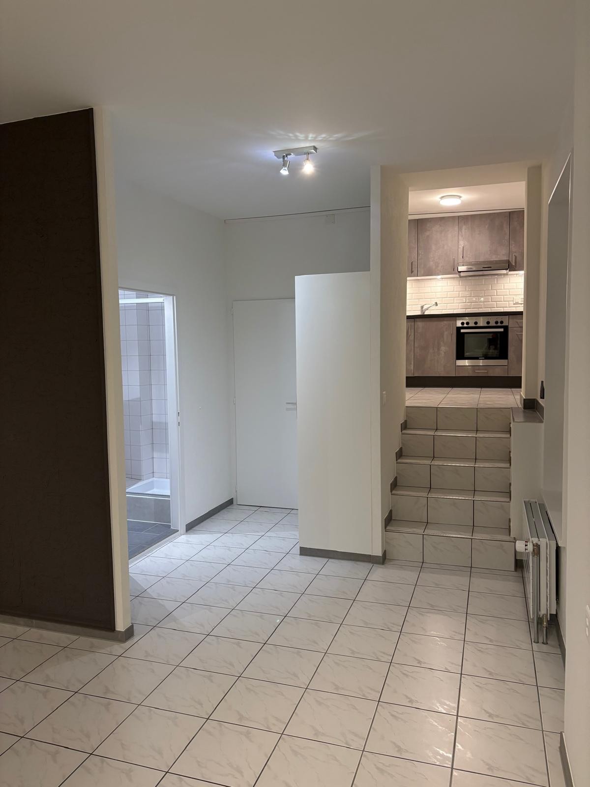 Studio rénové dans petit immeuble proche de la gare et de toutes les commodités comprenant : Hall avec armoire encastrée, cuisine agencée, grande pièce à vivre, salle-de-douches/WC.
